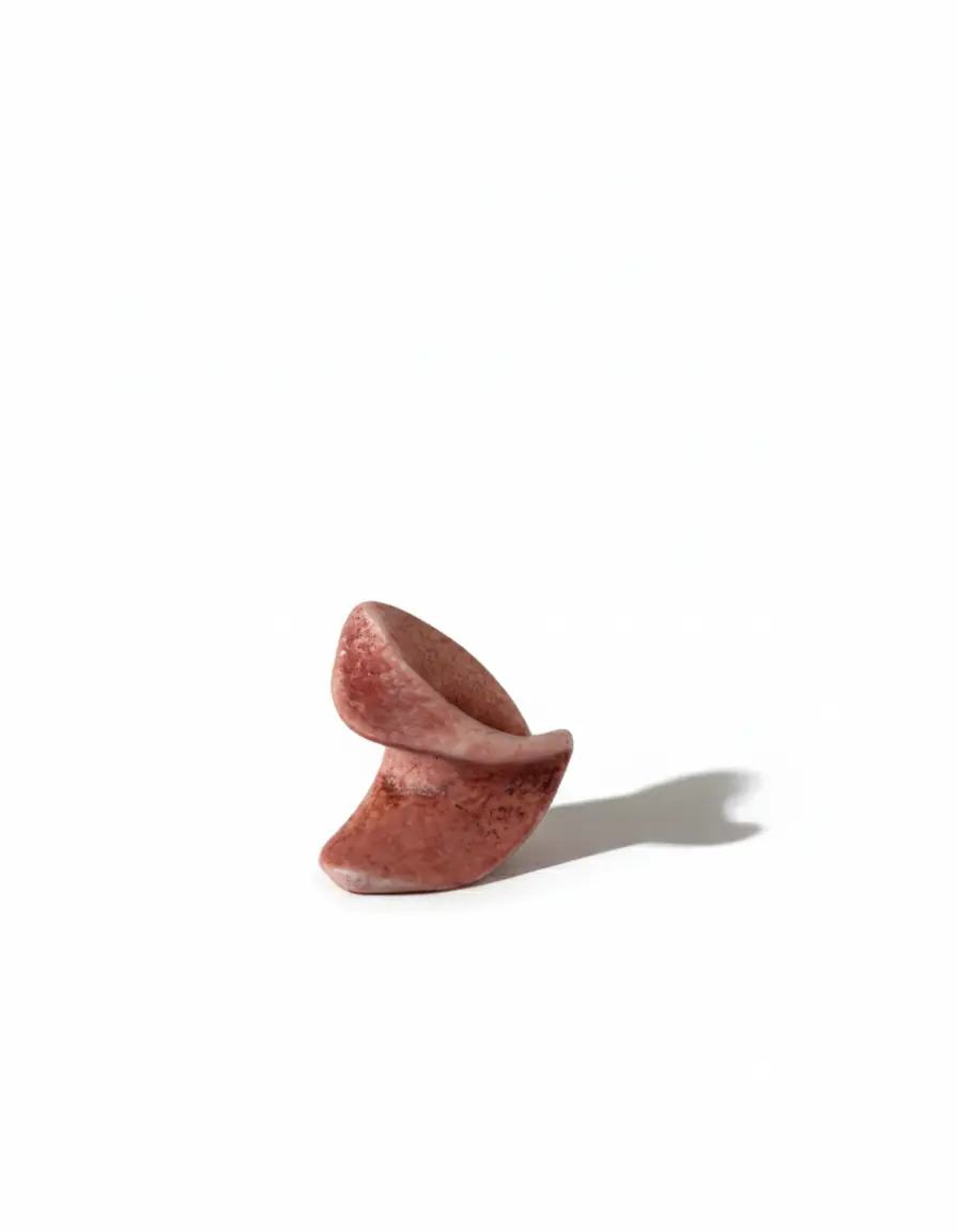 بدنه اصلی از پاپیه ماشه ساخته شده و با الیاف طبیعی موی بز ترکیب شده است تا حس حیات و فرم‌های باستانی را منتقل کند. این اثر مرزهای کلیشه‌ای جواهرات را با فرم و بافتی منحصر به فرد جابه‌جا کرده است.