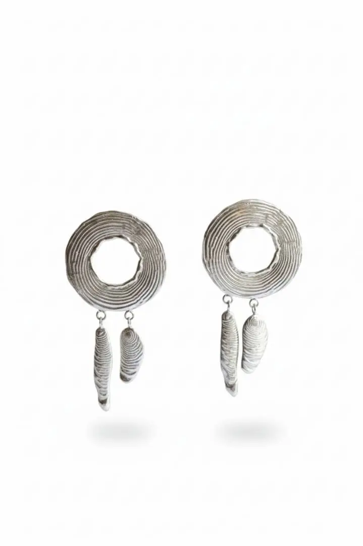 در هنر معاصر، گاهی سکوتِ سنگ‌ها قدرتمندتر از درخشش آن‌هاست. این گوشواره نقره دست‌ساز با فرم ارگانیک، با حذف تمام زواید و نگین‌های تزئینی، بر اصالتِ فلز و قدرتِ فرم تمرکز کرده است. بدنه این گوشواره‌ها با الهام از بافت‌های موجود در طبیعت (مانند تنه درختان یا امواج آب) طراحی شده تا به جای تکیه بر درخشش کاذب، با بازیِ نور و سایه روی سطوح نقره، جلب توجه کند.